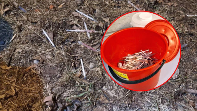 Trawnik usłany strzykawkami i igłami. Strażnicy nazbierali pół wiadra!