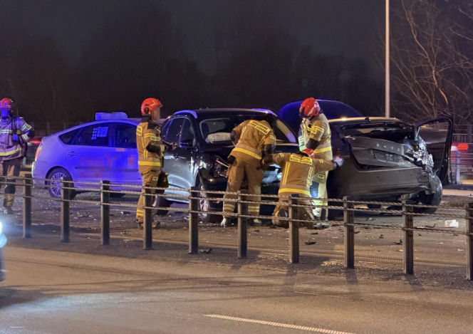 Zderzenie czterech aut na moście w Warszawie